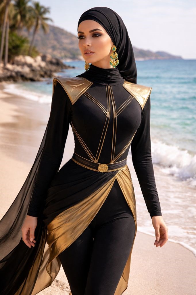 Inspired by the timeless power of Cleopatra, the Cleopatra Armor Flow Set redefines modest swimwear with bold elegance and royal presence.