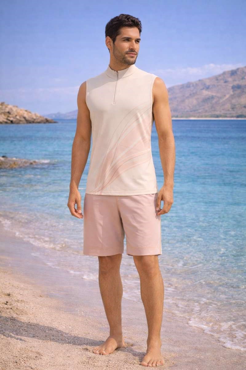 Inspired by the calm strength of the lotus the Lotus Core Sleeveless Set brings a refined and modern approach to men’s swimwear